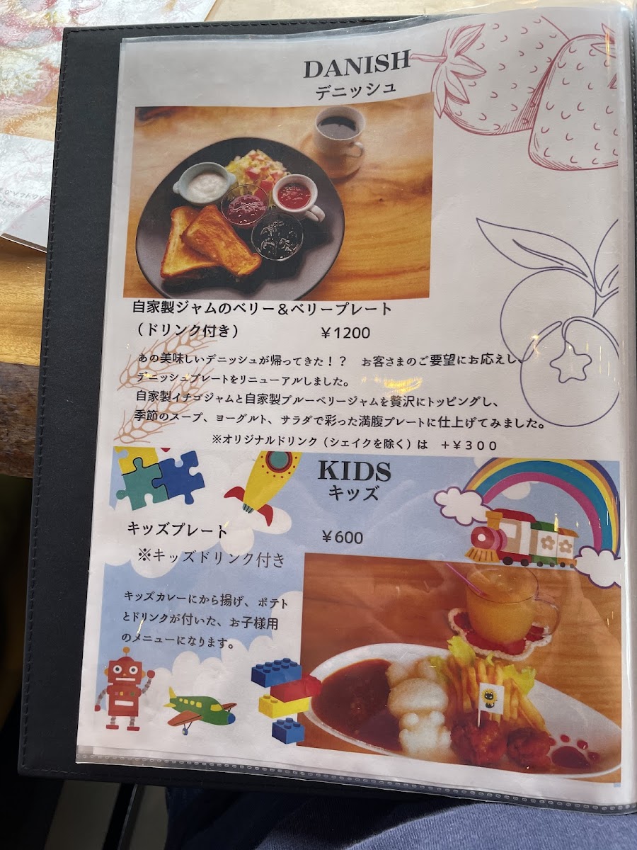 The café also delights in its selection of beverages, featuring the irresistibly creamy いちごシェイク (JP¥700) made with their own farm-fresh strawberries, and the warming indulgence of a カフェラテ (JP¥600) prepared to perfection.